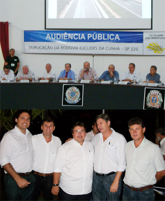 Nessa quarta-feira, 18, os vereadores José Roberto Fávaro (PSDB), Claudir Aranda (PDT) e Luiz Henrique Viotto (PMDB) participaram de Audiência Pública, para a duplicação e restauração da SP - 320 (Rodovia Euclides da Cunha).