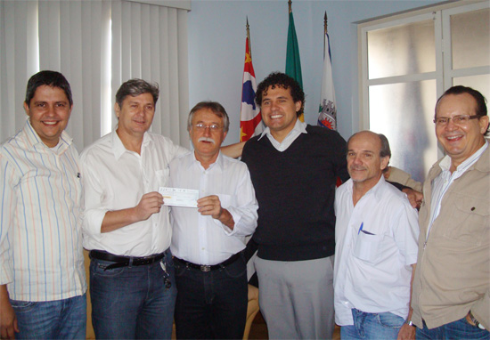 O cheque foi entregue em um ato no gabinete do prefeito, nesta sexta-feira, 02, às 9h, com a presença do presidente da Câmara, Claudir Aranda (PDT), e dos vereadores Rivelino Rodrigues (PPS), Luiz Henrique Viotto (sem partido) e Osmar Pereira Rezende (PMDB).